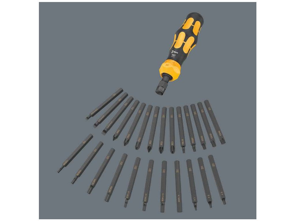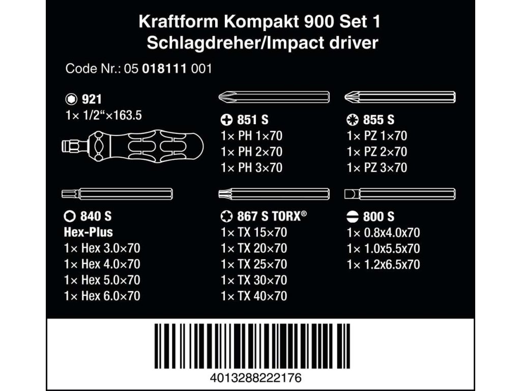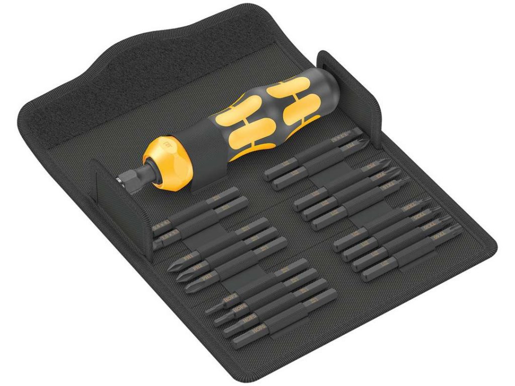 Sada 1/4" rázových uťahovákov, dĺžka čepele 70 mm, uvoľňovací moment 25 Nm, 19 kusov, v látkovom kufríku - Wera Kraftform 018110.
