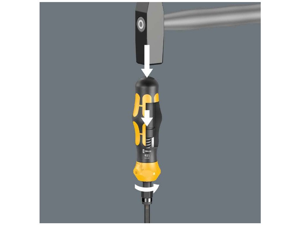 Rázový skrutkovač spája výhody ručných rázových skrutkovačov a skrutkovačov s priechodným ostrím. Prepínateľná funkcia jednoducho volí typ skrutkovacej práce.