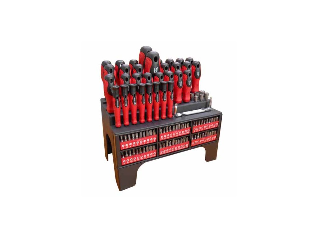 Prakticky poskladaná súprava skrutkovačov rôznych profilov, ideálny pre autoservis, dielňu, domáceho hobby užívateľa pod.