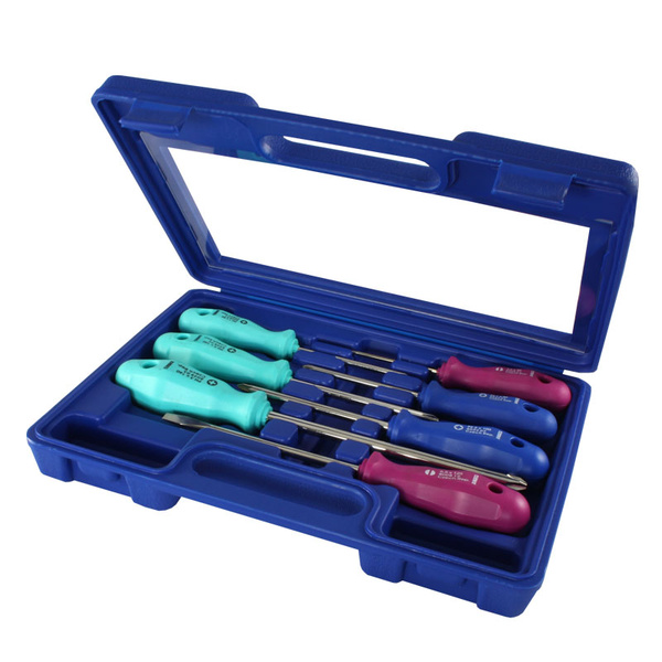 Prakticky poskladaná sada skrutkovačov veľmi často používaných profilov a rozmerov. Ideálne nielen pre profesionálneho remeselníka, ale aj domáceho hobby užívateľa.