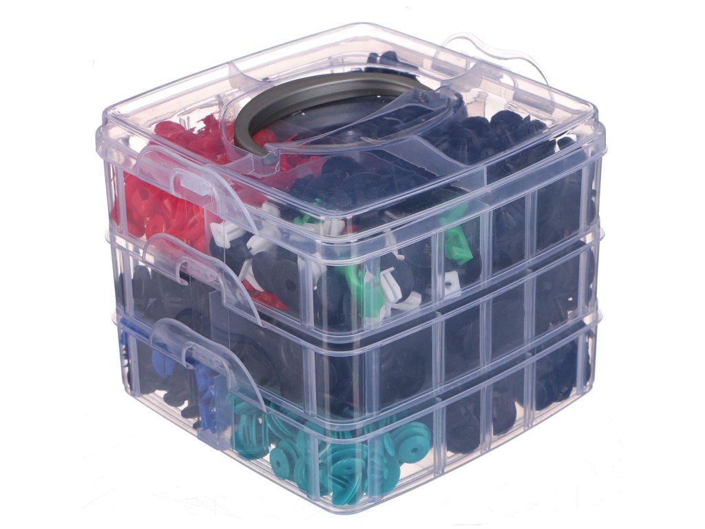 Sada klipov, svoriek a kolíkov na čalúnenie vozidiel MECHNIC TRIM CLIP SET, 700 ks, v plastovom boxe - SIXTOL SX1233.