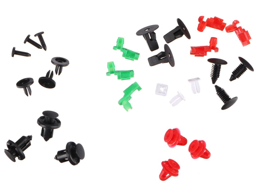 - 20 druhov svoriek a klipov na upevnenie nárazníkov, blatníkov, krytov, čalúnenia (kufra), sedadiel a obloženia, upevnenie výplní dverí