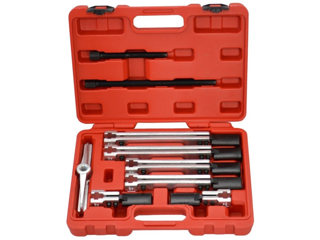Sada univerzálnych dvojramenných sťahovákov je určená najmä na sťahovanie guľôčkových ložísk, kotúčov, ozubených kolies atď. Sadu možno použiť v dielni, garáži alebo servise.