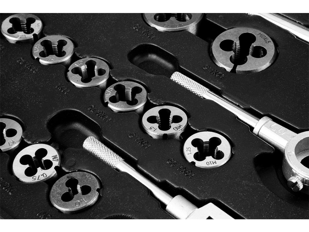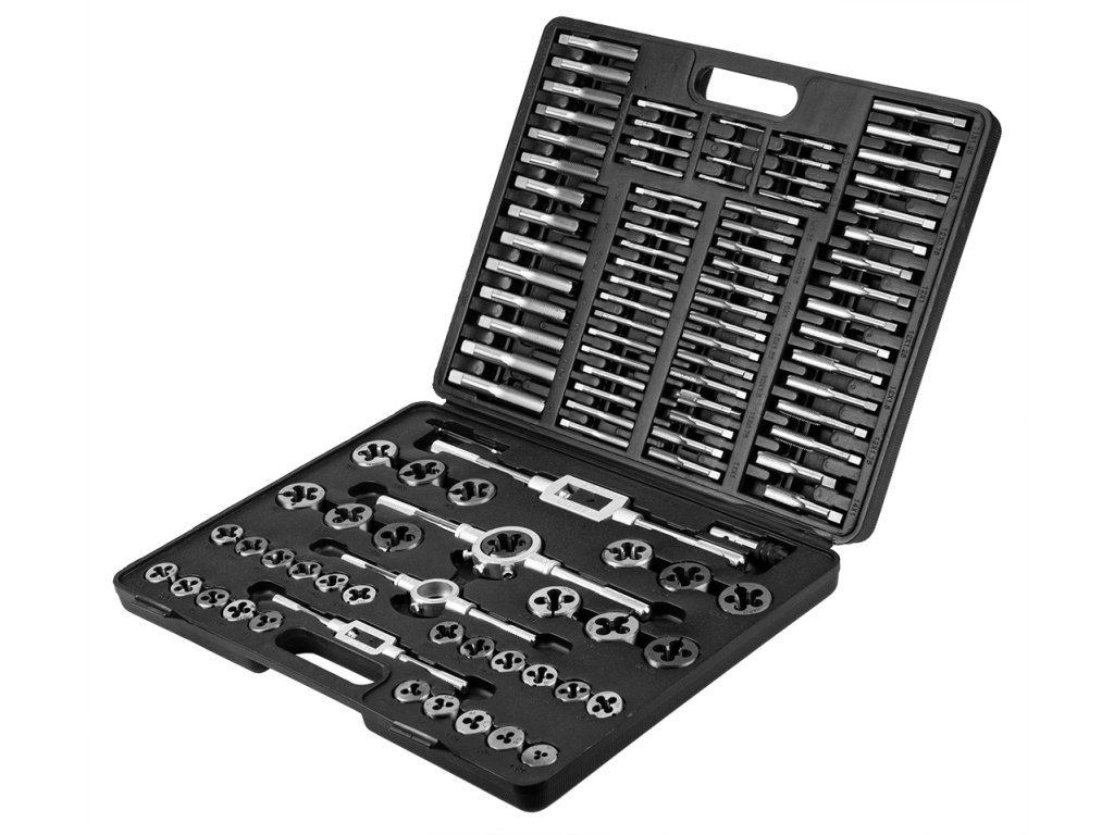 Všestranná sada závitníkov a matríc je určená na opravu závitových spojov rôznych kalibrov. Súprava je vhodná na použitie v dielni, garáži alebo servise.