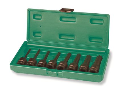 Široký výber súprav nástrčných kľúčov s profilom TORX (päťcípa hviezdička) . Nájdete tu bohatú ponuku orechov na ručné použitie (Cr-V) aj na použitie na úderovom náradí, sady predĺžených hlavíc na húže prístupné skrutky a ďalšie špeciality. Jednotlivé TORX hlavice potom môžete zakúpiť tu .