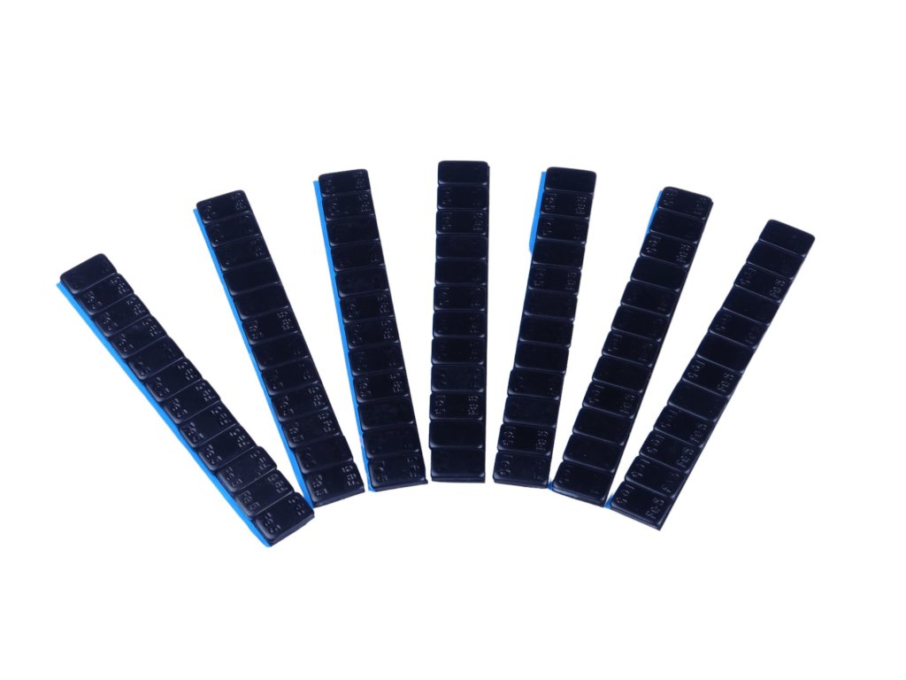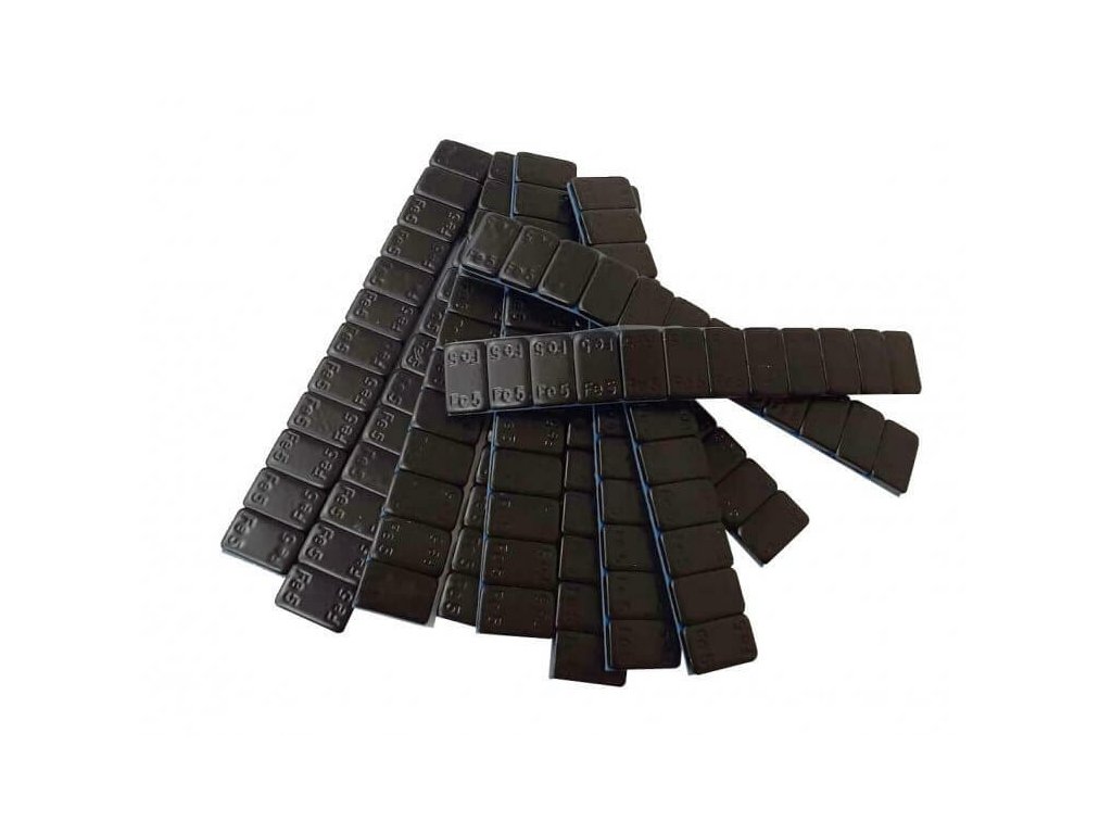 Samolepiace vyvažovacie závažia na vyvažovanie liatych - ALU kolies, oceľové s práškovým nástrekom (čierna farba), hmotnosť 5 gramov, s páskou bez zanechania stôp.