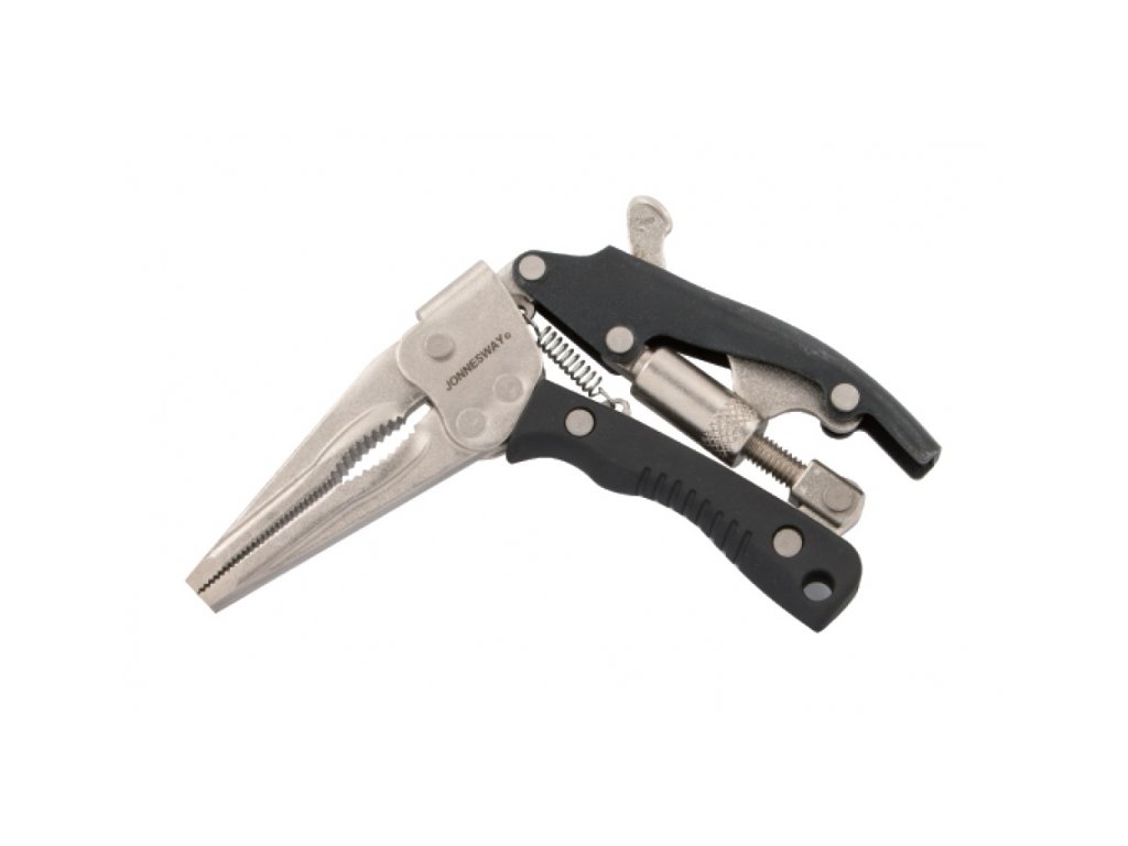 Rýchloupínacie kliešte so samosvorným mechanizmom, tzv. grip kliešte, rovné čeľuste 4,8 cm, pogumovaná pištoľová rukoväť – JONNESWAY P36M02P