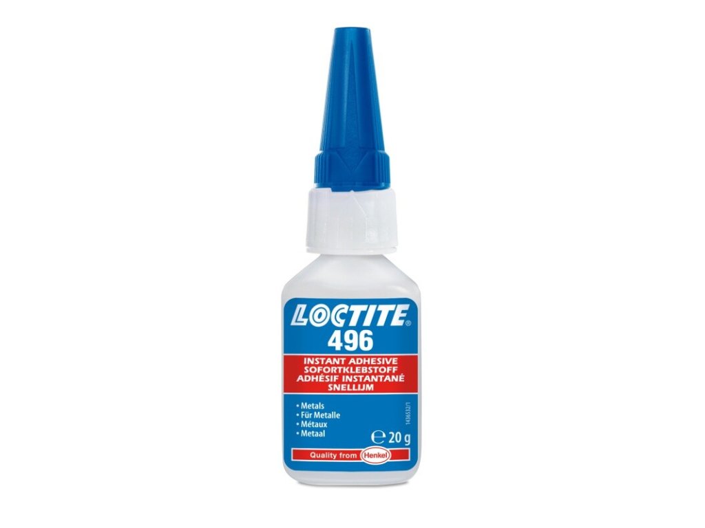 Špeciálne sekundové lepidlo Loctite 496 určené predovšetkým na lepenie kovových spojov, kovových povrchov a súčiastok. Možno ho použiť na rýchle opravy, ako aj na konštrukčné kovové spoje. Loctite 496 vytvrdzuje bez prístupu vzduchu v medzere medzi kovmi, ale má dobrú priľnavosť aj k iným materiálom - najmä ku gume a plastom. Sekundové lepidlo Loctite 496 dosahuje svoju manipulačnú pevnosť v priebehu niekoľkých sekúnd a po úplnom vytvrdnutí je spoj priehľadný a takmer vôbec ho nie je vidieť. Samozrejmosťou je odolnosť spoja proti praskaniu a uvoľňovaniu a lepidlo odoláva aj vysokému teplotnému zaťaženiu až do 80 °C. Možno ho použiť v domácnosti aj vo výrobe.