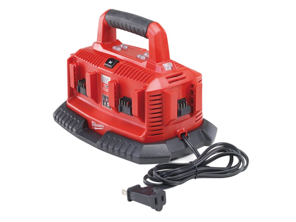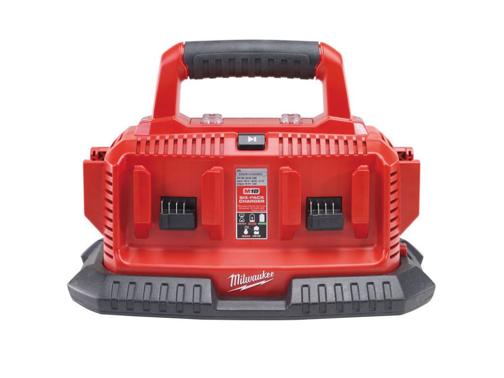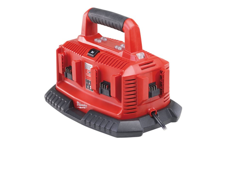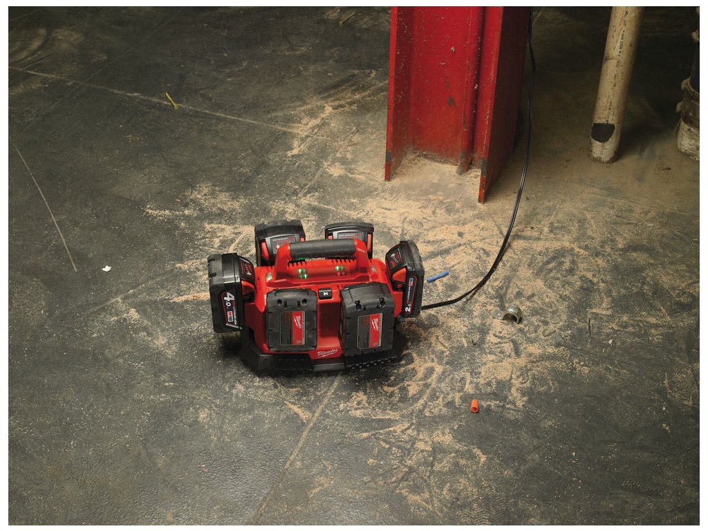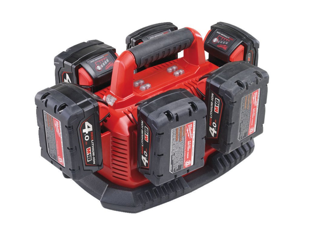 Veľmi praktický prístroj na dobíjanie až 6 lítium-iónových batérií M14 a M18 naraz. Veľmi vhodné napr. pre vyťažené pracoviská s väčším počtom aku náradia.