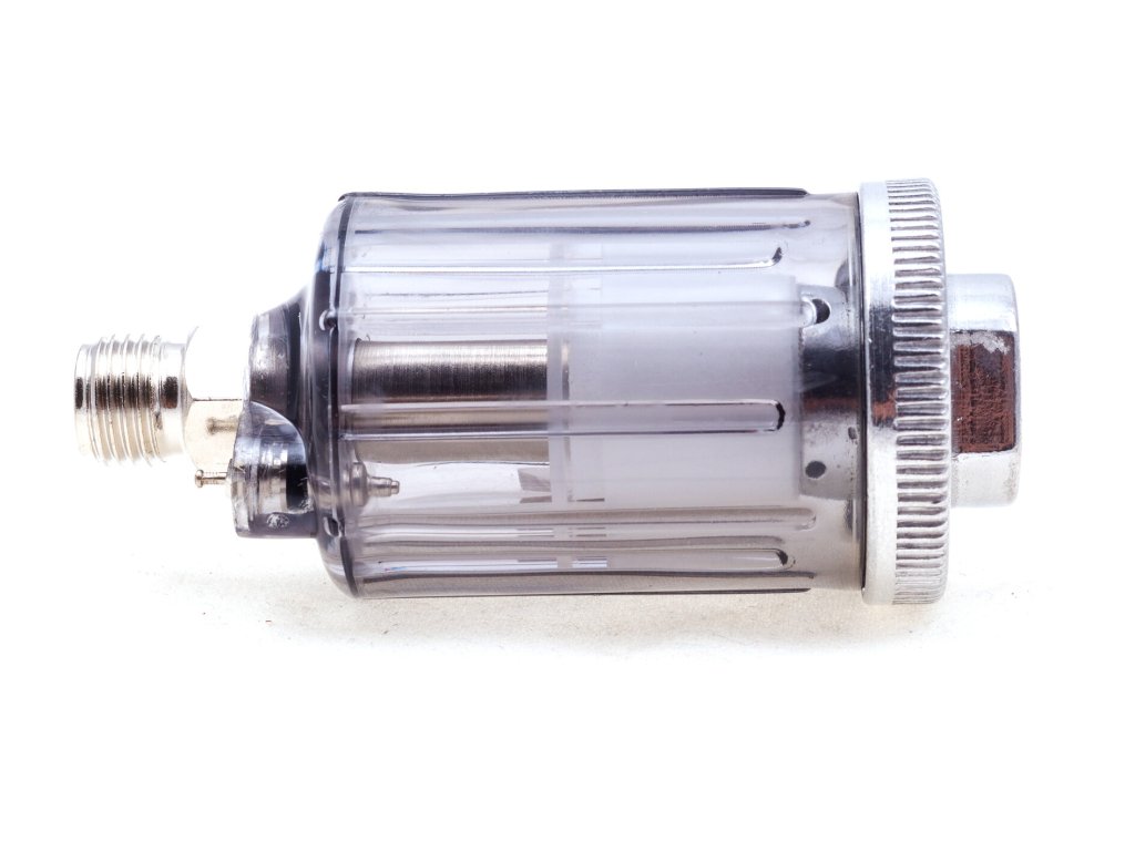 Odlučovač má ventilček pre ľahké vypustenie kondenzátu.