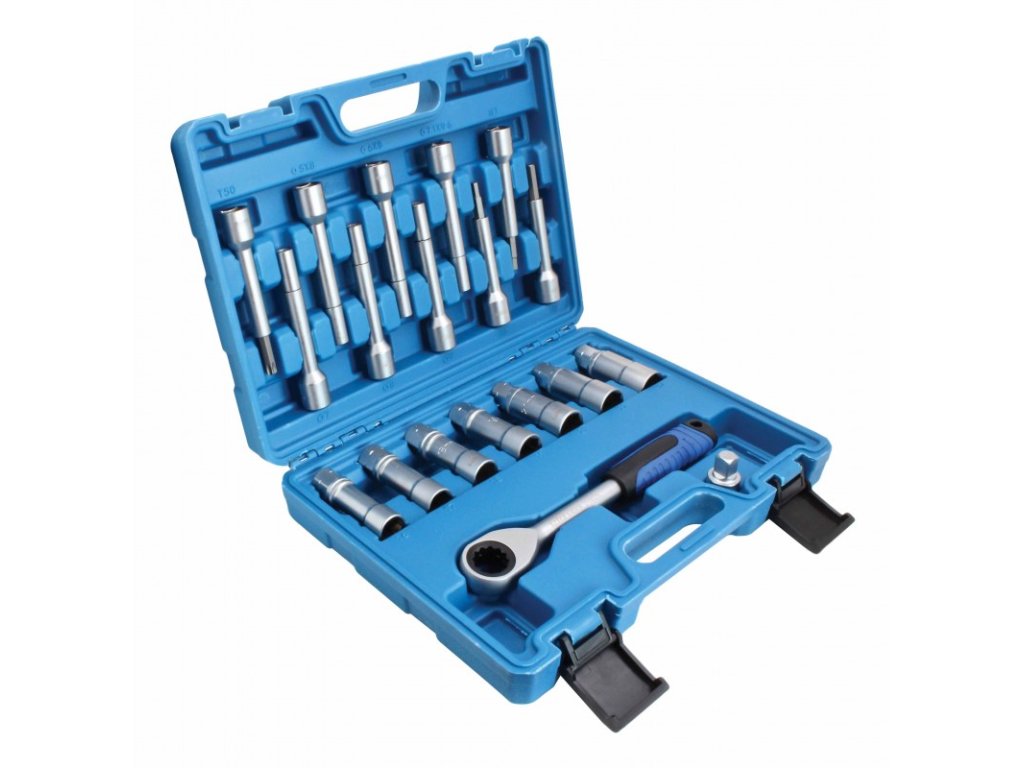 Hlavica na servis tlmičov, s priechodná račňou, súprava 18 dielov - SATRA
