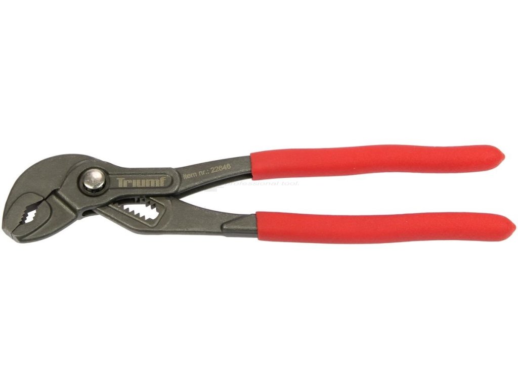Profil čeľustí umožňuje uchopenie plochých, kruhových a vícehranných profilov. Bezpečné nastavenie rozsahu čeľustí vďaka bytelnému mechanizmu s pevným, ozubeným zámkom - po zacvaknutie na požadovanom rozsahu kliešte zostávajú fixované aj po roztvorení čeľustí (pre zmenu nastavenia je vždy nutné stlačiť poistku zámku).