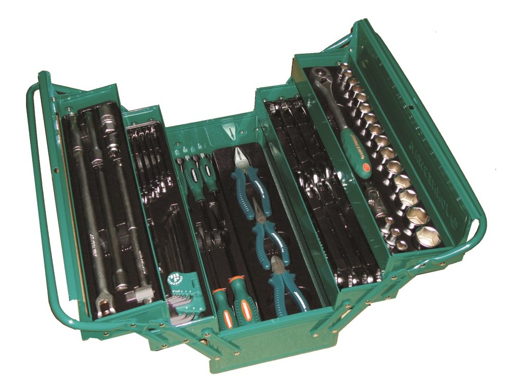 Univerzálna sada náradia pre profesionála i hobby užívateľa. Obsahuje základné nástroje vhodné do dielne i domácnosti. Každý z dielov má vďaka poradačom svoje presné miesto a užívateľ má teda prehľad, či niečo nechýba. Všetko je v najvyššej kvalite.