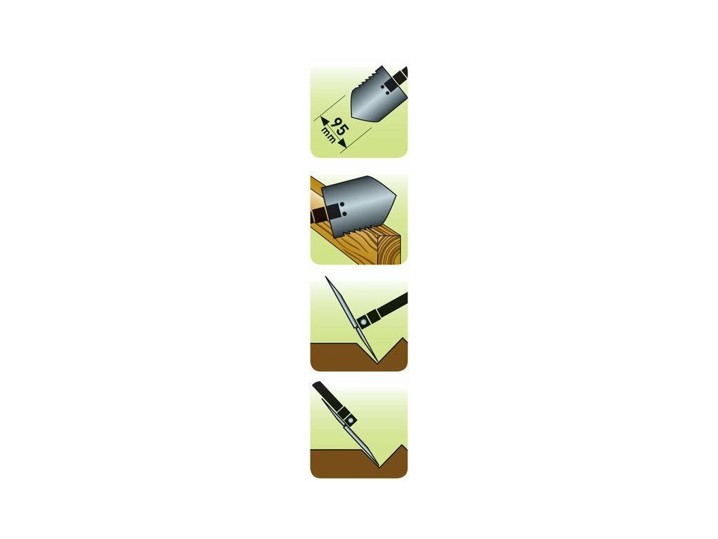 Nástroj je možné použiť na kopanie dier, rýh či premiestňovanie sypkého materiálu. Lopata má na strane zuby určené na rezanie dreva.