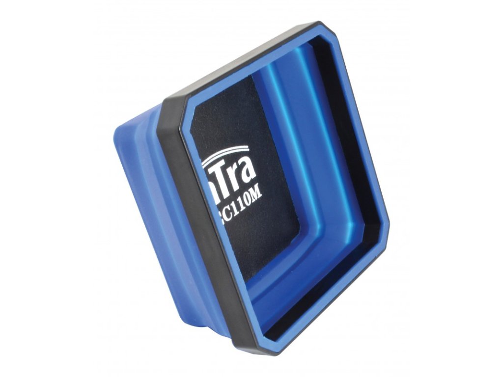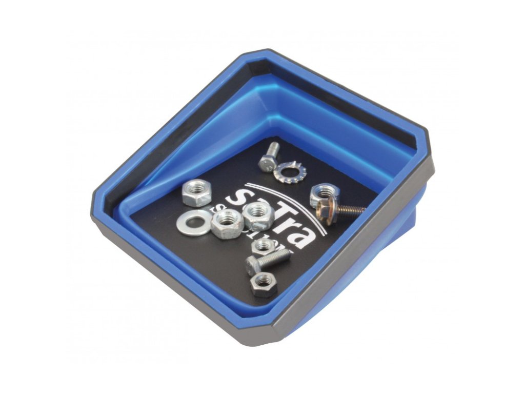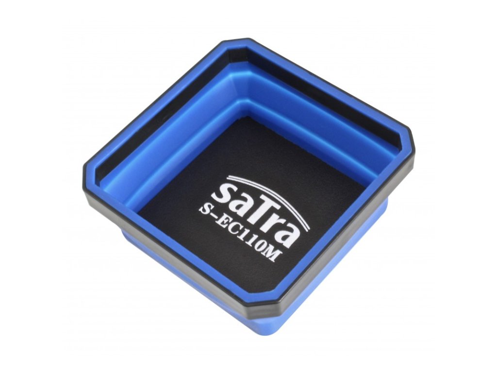 Skladacia magnetická miska na drobné predmety, matice, skrutky a pod., 110 x 110 mm, výška 2 -5 cm, vyrobené zo silikónu odolnému voči oleju so základňou z ABS plastu, s magnetmi na prichytenie ku kovovému povrchu - SATRA S-EC110M.