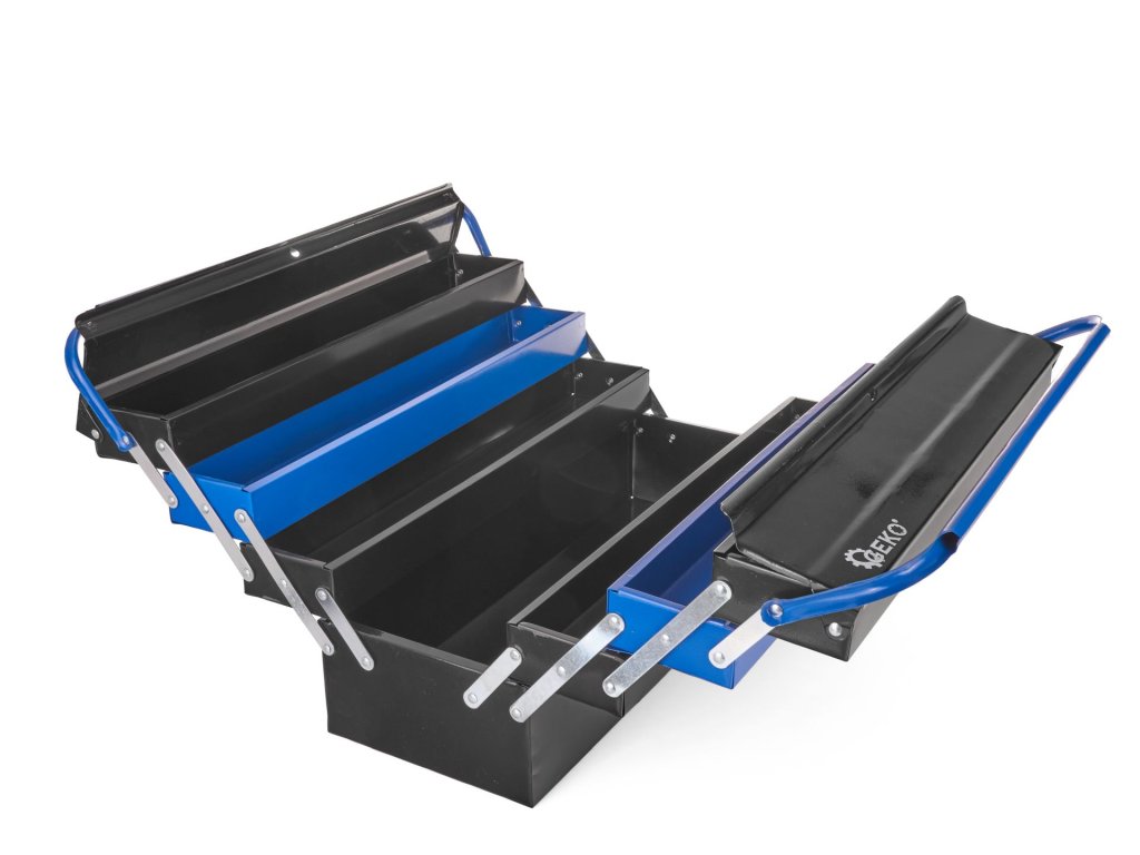 Skladací box na náradie - box na náradie 54 x 21 x 27 cm, 7 zásuviek, s rukoväťou, kov - GEKO G10851.