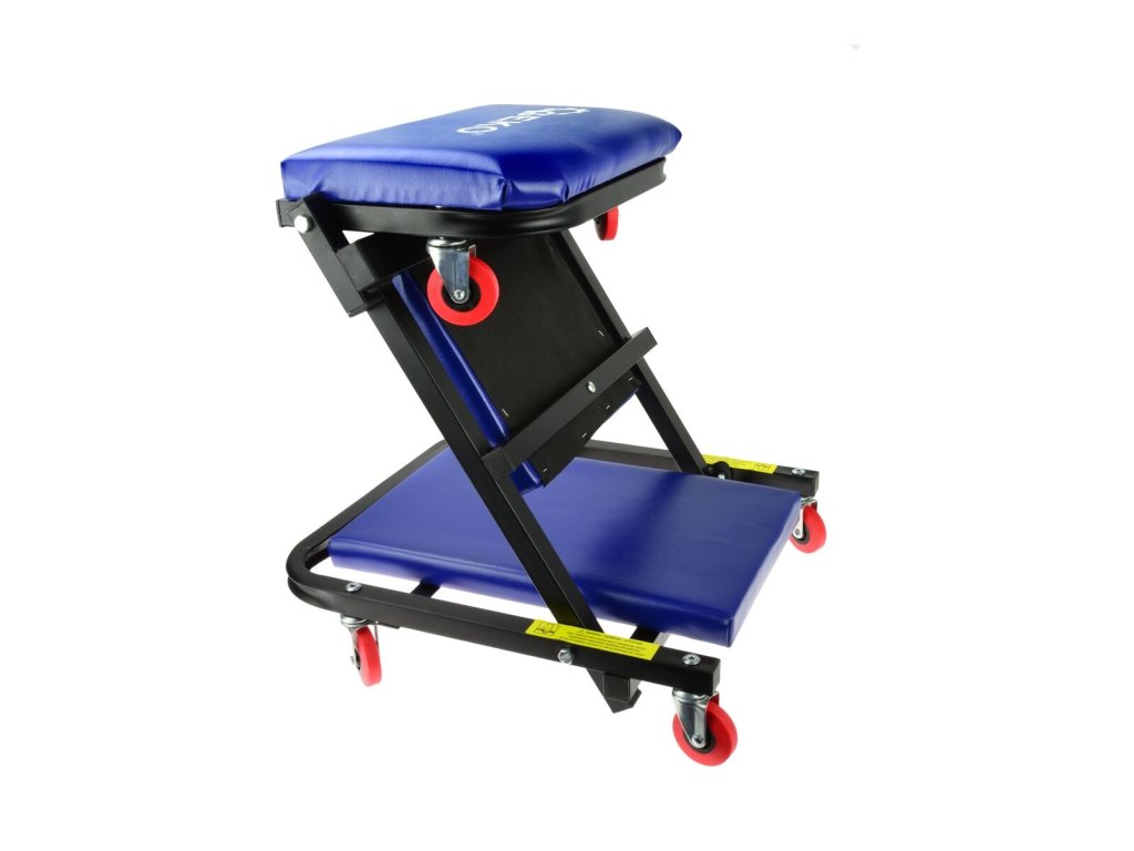 Skladacie dielenské sedadlo a ležadlo, pojazdné na kolieskach, veľká nosnosť 110 kg - GEKO G02098