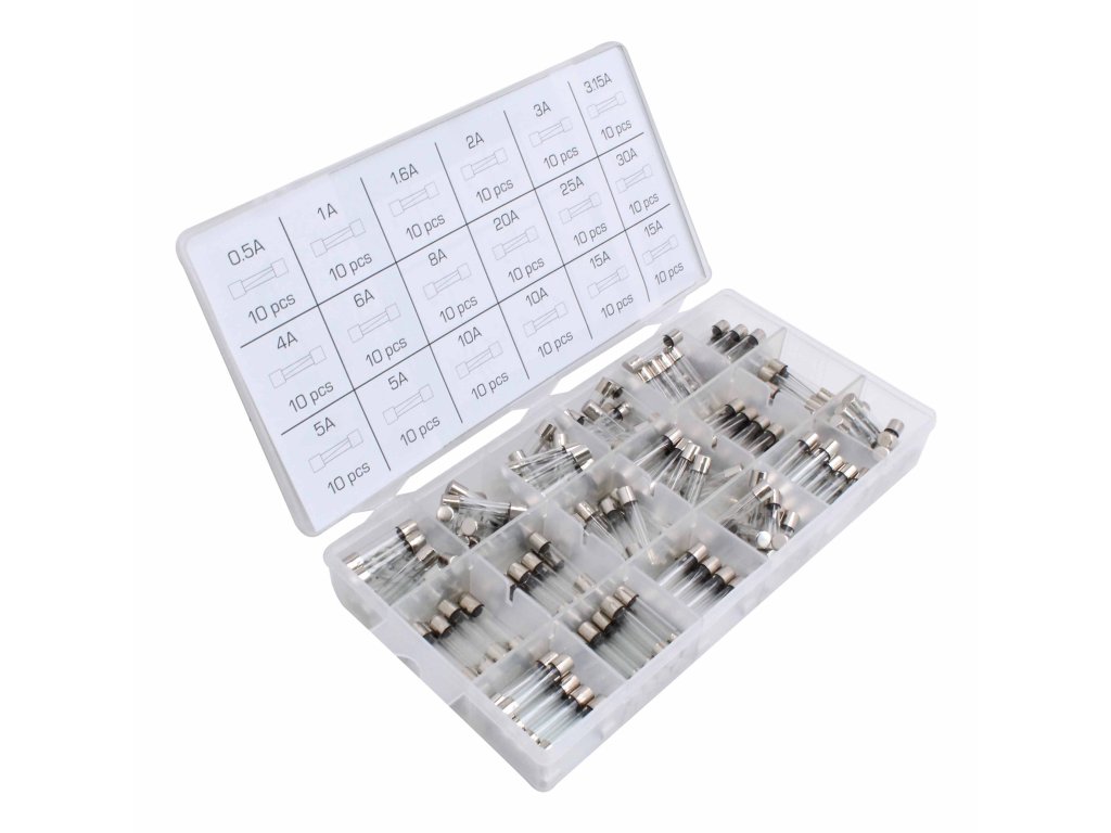 Poistky sklenené trubičkové 6x30 mm, pre palubné elektroinštaláciu áut, sada 180 kusov v plastovej krabičke - ASTA A-TC521