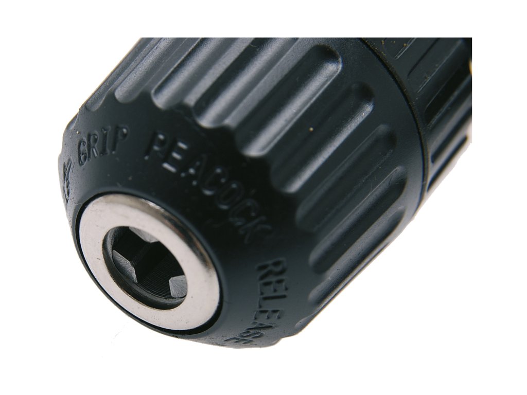 Na upevnenie vrtákov či iného príslušenstva nie je potrebný kľučka - všetko sa deje len otočením hlavy skľučovadla.