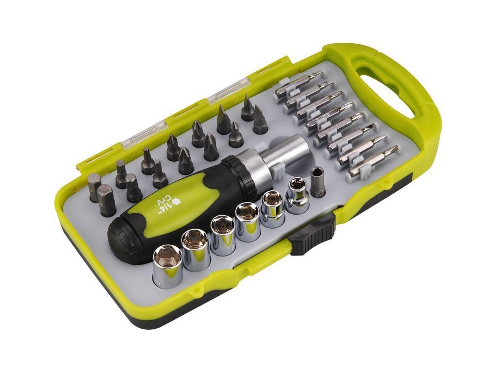 Skrutkovač račňový s hlavicami a hrotmi, sada 30ks