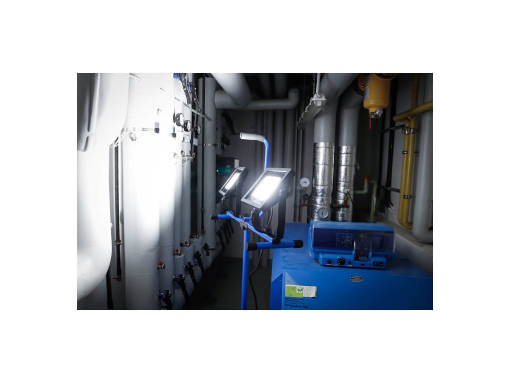 Vysoko praktické svietidlo na osvetlenie pracovného priestoru v autoservisoch, dielňach, na stavbách, ale aj na vonkajších podujatiach, v závodných depách a pri podobných príležitostiach. Je vybavené dvoma vysoko svietivými a nezávisle nastaviteľnými reflektormi LED SMD, každý so 120 diódami. Vďaka tomu je rozsah osvetlenia naozaj široký. Trojnožka (stojan) je výškovo nastaviteľná podľa aktuálnej potreby.