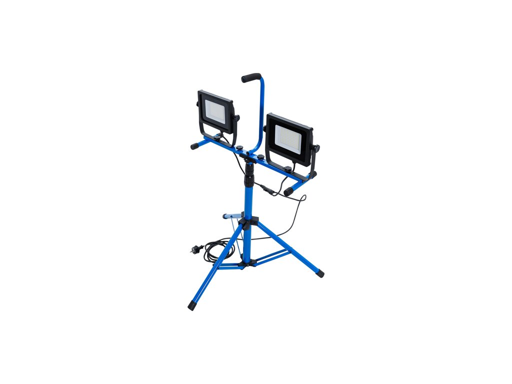 Vonkajšie a vnútorné elektrické svetlo - stojanová lampa s dvoma LED SMD reflektormi, výkon 2x 70 W, maximálna svietivosť 2x 7000 lumenov, s výškovo nastaviteľným statívom - BGS technic 85338