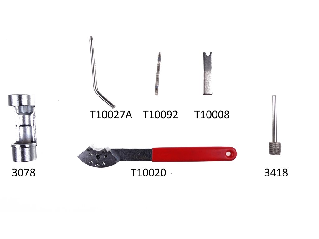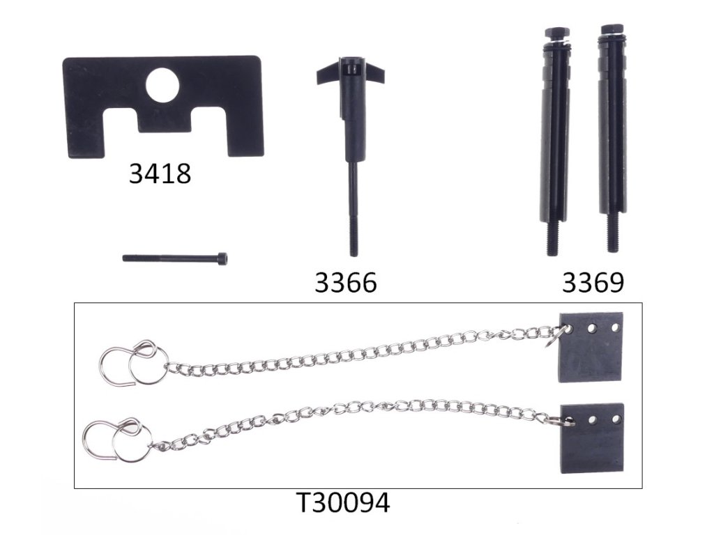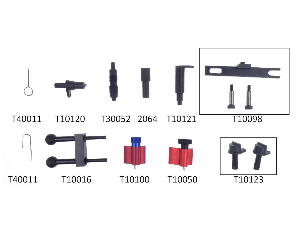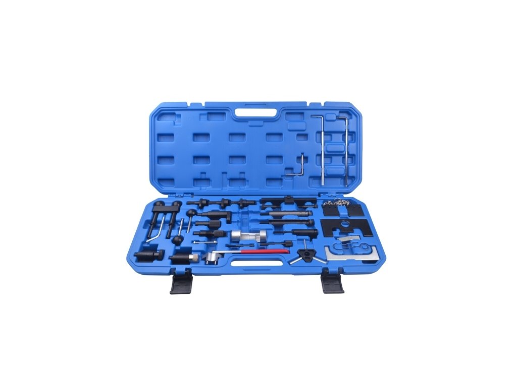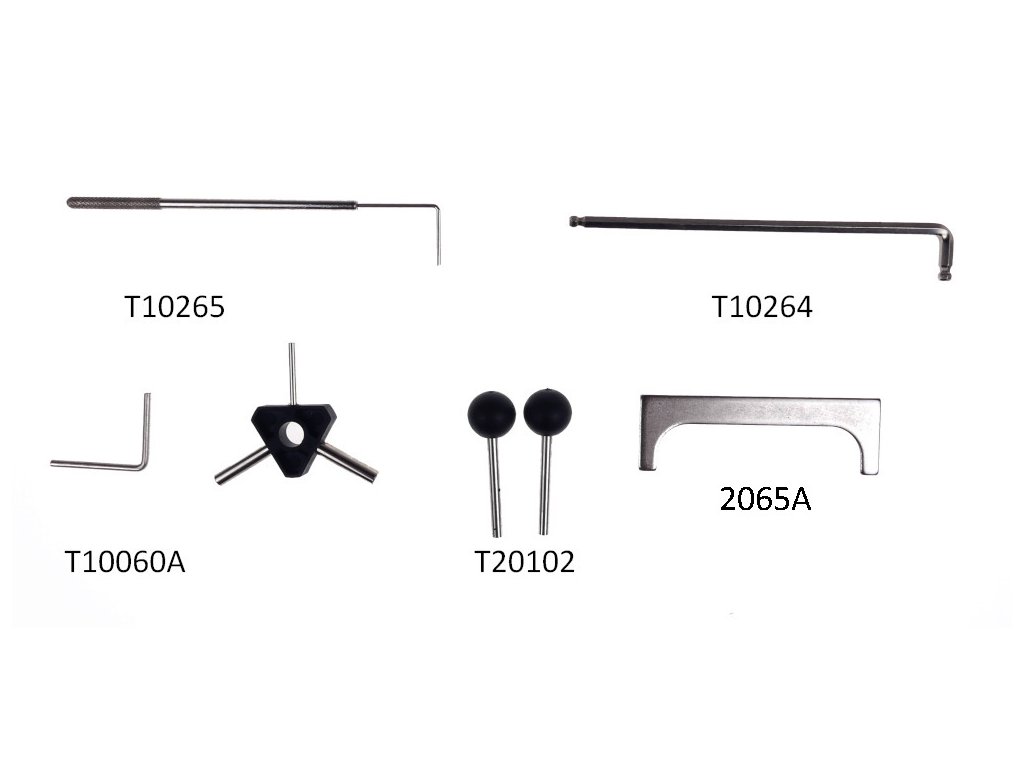 Súprava prípravkov na aretovania a reguláciu rozvodov motora v koncernových vozidlách Volkswagen, Škoda, Audi a Seat s benzínovým (zážihovým) aj naftovým (vznetovým - diesel) motorom.