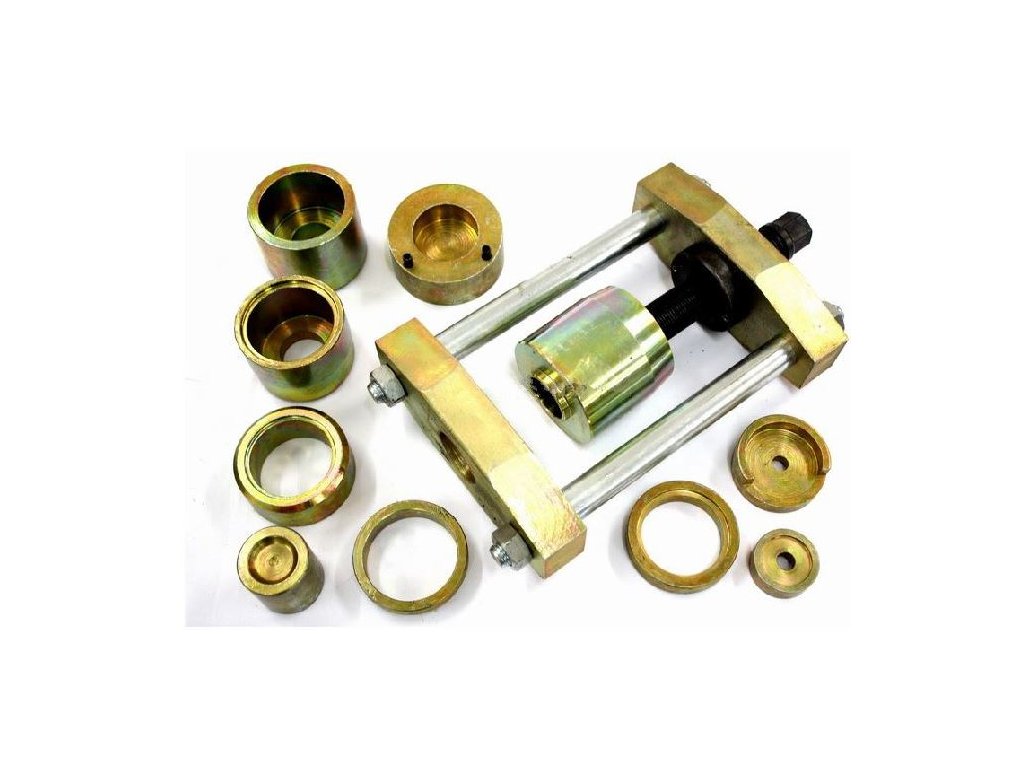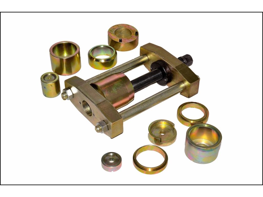 Špecifikované na lisovanie a lisovanie horných a dolných guľových čapov ramien prednej nápravy. Súprava umožňuje demontáž a montáž čapov na vozidlo.