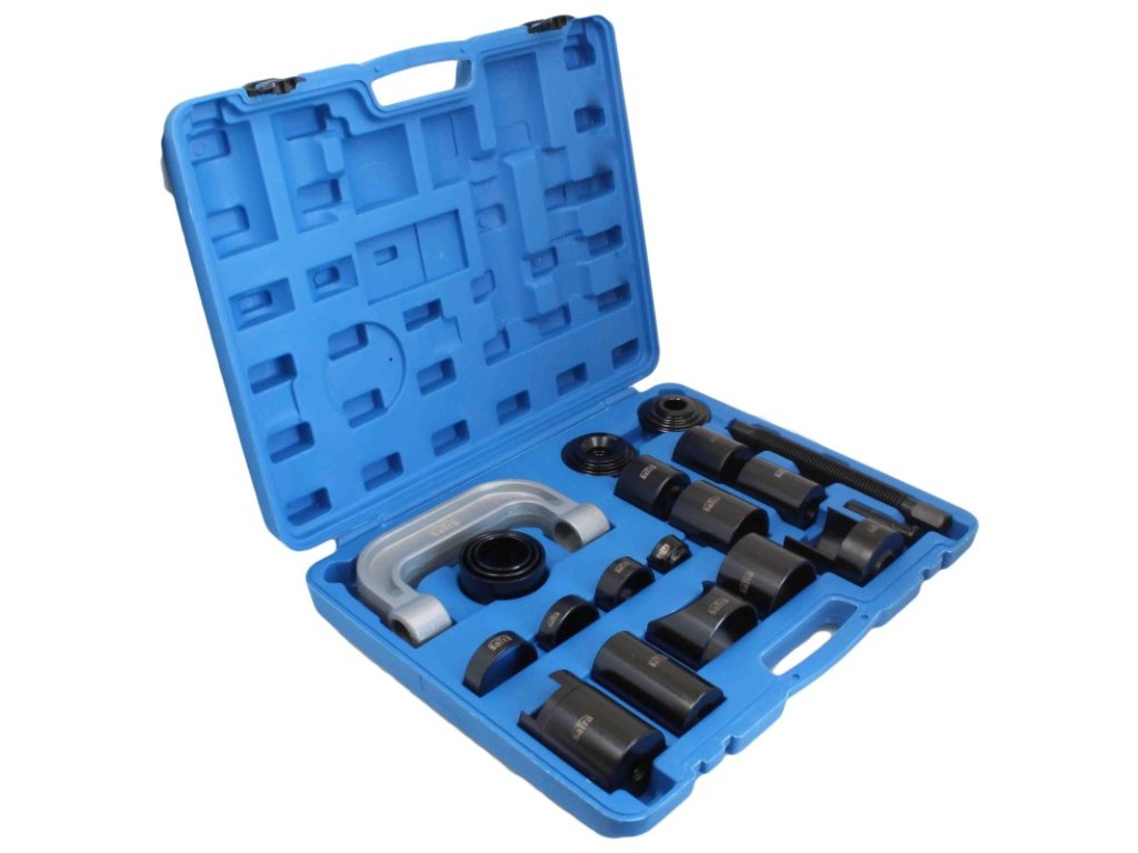 Sada prípravkov na montáž a demontáž guľových kĺbov, brzdových čeľustí a kĺbových spojov, 21 dielov, v plastovom kufríku - SATRA S-BJ19UT