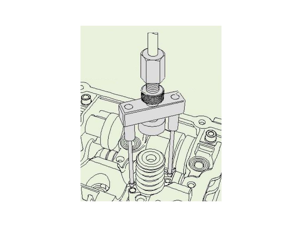 Prípravok sa uchytí k hlave motora a pomocou 1kg reverzného kladiva sa vstrekovač vytiahne (viď obrázok).