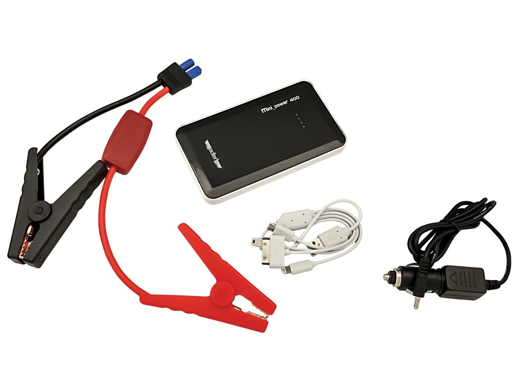 Veľmi malá a ľahká štartovacia powerbanka s rozmermi ako smartfón umožňuje rýchle a pohodlné štartovanie vozidiel s vybitými batériami.