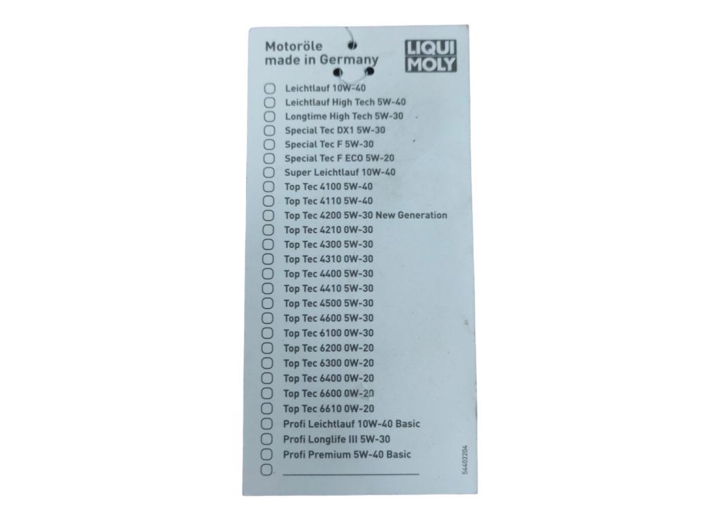 Tabuľka na výmenu oleja, nemecký jazyk - LIQUI MOLY.
