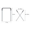 Konštrukcia je trubková s lakovaným povrchom, pracovná časť má mäkký protišmykový poťah pre zvýšenie bezpečnosti.