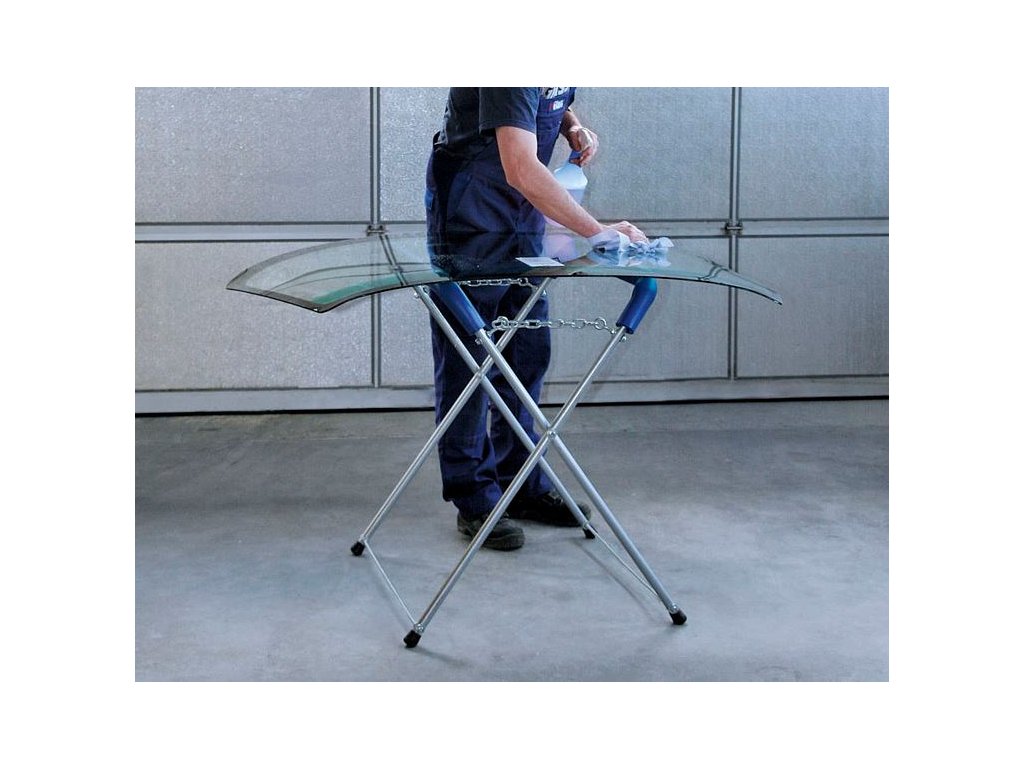 Robustný a praktický stojan na prácu s čelnými autosklo. Používa sa napr. Pri nanášaní montážnych lepidiel, očisťovanie, spravovanie a pod. Možno využiť aj pre bočné a zadné sklá. Vďaka veľkej nosnosti je možné jeho využitie aj pre sklá väčších vozidiel (dodávky, SUV a pod.).