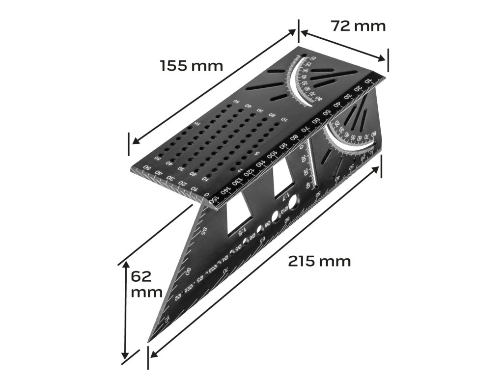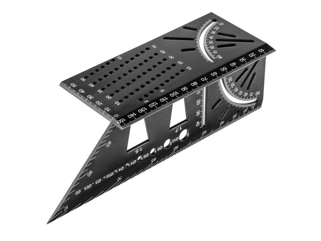 Uholník umožňuje jednoducho vykonávať merania a prenášať ich na trámy, rúry alebo iné trojrozmerné materiály. Jeho obdĺžniková geometria umožňuje vykonávať presné merania v rohoch. Ideálny na presné prenášanie uhlov pokosu na dve susedné strany obrobku. Zarážky pre uhly 45° a 90° a uhlomer umožňujú vykonať akúkoľvek úlohu. 3D uhlomer možno použiť ako tesársku značku na vytvorenie rovnobežných čiar a umožňuje tiež určiť priemer vrtáka.