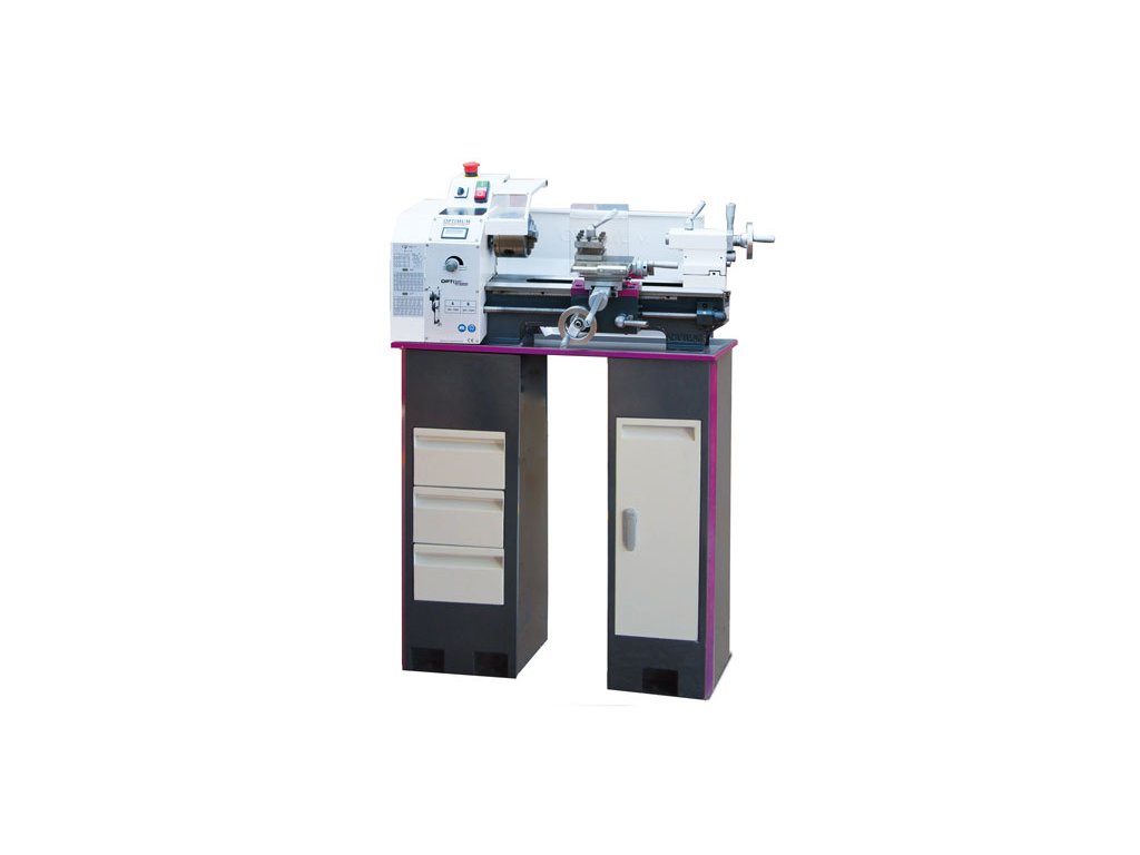 Kompaktný, viacúčelový sústruh s plynulou reguláciou otáčok vretena, zobrazenie otáčok pomocou digitálneho ukazovateľa.