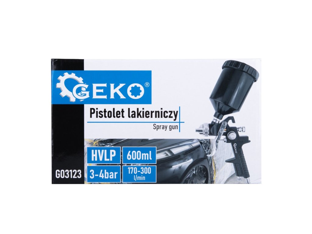 Striekacia pištoľ HVLP so štyrmi tryskami 1,3, 1,4, 1,7, 2,0 mm, pracovný tlak 3-4 bar - GEKO G03123