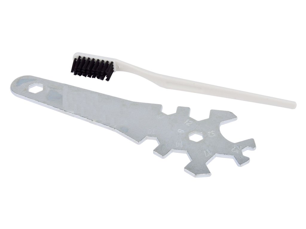 V balení je dodávané: striekacie pištole HVLP, nádobka na farbu, kľúč na trysku, čistiaca kefka.