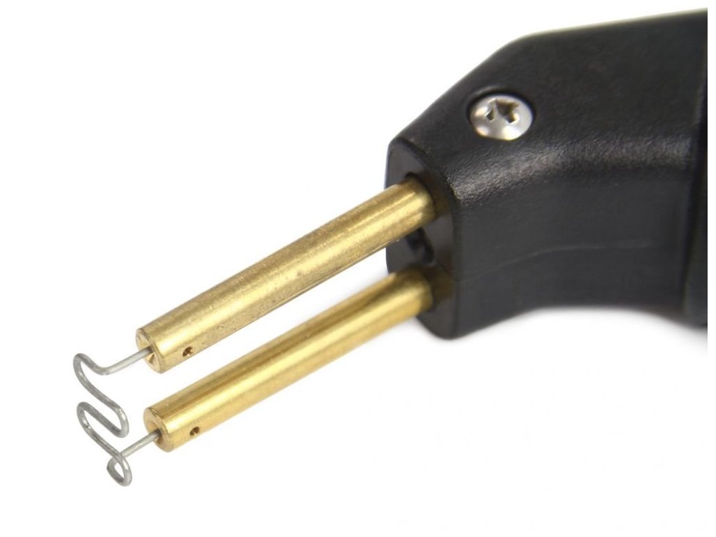 - Svorka príslušného tvaru sa vloží do držiaka zariadenia, po stlačení tlačidla na držiaku sa rozsvieti LED svetlo, ktoré osvetlí opravované miesto, svorka pripevnená cez trhlinu na zadnej strane plastového dielu sa veľmi rýchlo zahreje a v priebehu niekoľkých sekúnd sa začne zapichovať do roztaveného plastu, v závislosti od hrúbky plastu sa takto roztaví milimeter alebo viac plastu, a keď sa to dosiahne, teplo sa vypne, opäť sa počká niekoľko sekúnd, kým roztavený plast okolo sponky stvrdne, držiak sa oddelí od sponky a sponka zostane roztavená v plaste.