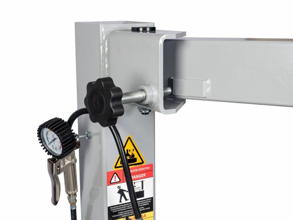 Stroj je vybavený upínacím stolom s upínaním pre kolesá 10"- 21" a ochranným plastom, ktorý zabraňuje poškriabaniu kolies. Krimpovací stroj má aj hustilku pneumatík, nádobu na montážnu pastu s držiakom, kefku atď.