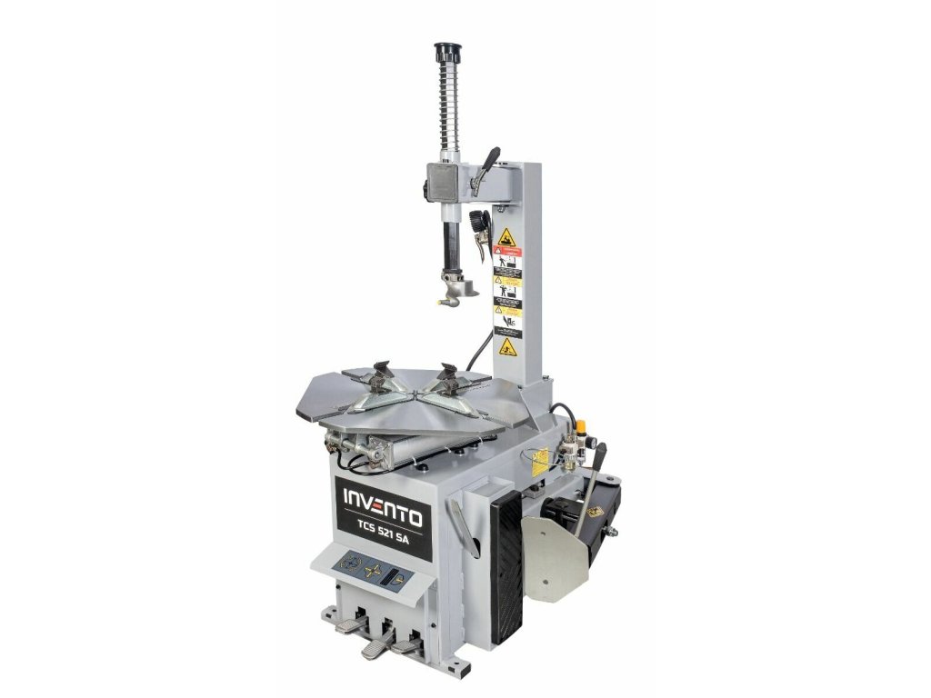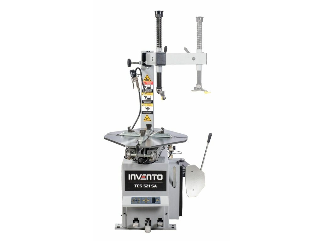 Poloautomatický výmenník pneumatík pre osobné a dodávkové pneumatiky, pre priemery 10-21", pracovný tlak 8-10 barov, sila na pätke 27000 N - Invento TCS 521 SA.