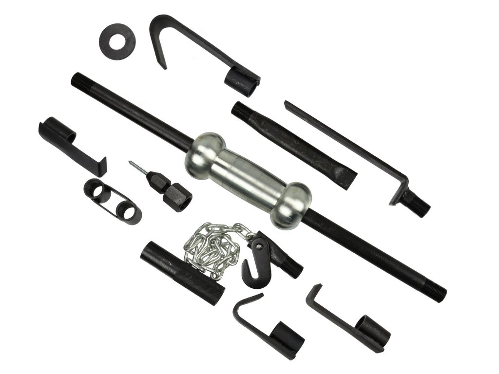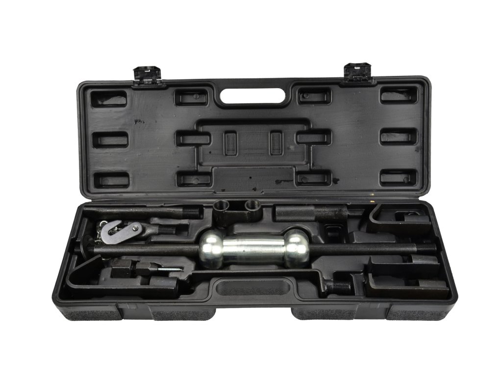 Súprava obsahuje rôzne typy svoriek, kladiviek, adaptérov a ďalšieho príslušenstva na vyťahovanie a odstraňovanie preliačin.