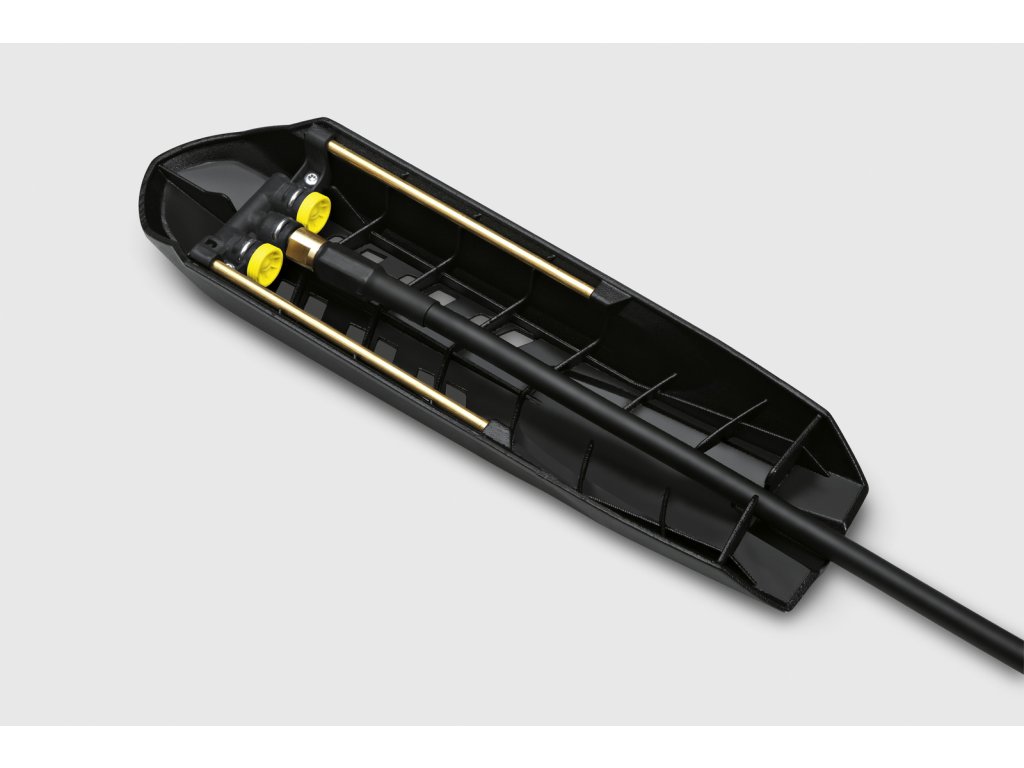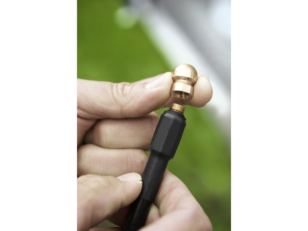 Ochrana hadice proti zalomeniu a mosadzná prípojka zabezpečujú dlhú životnosť. Dĺžka hadice je 20 m. Súprava na čistenie odkvapov a potrubí je vhodná pre vysokotlakové čističe z hobby série K2-K7.