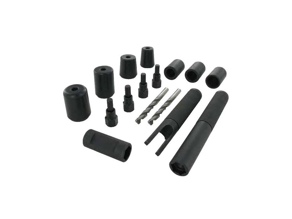 Súprava prípravkov pre demontáž / odvŕtaniu rôznych bezpečnostných kolesových skrutiek pri ich poškodeniu alebo strate kľúča k nim.