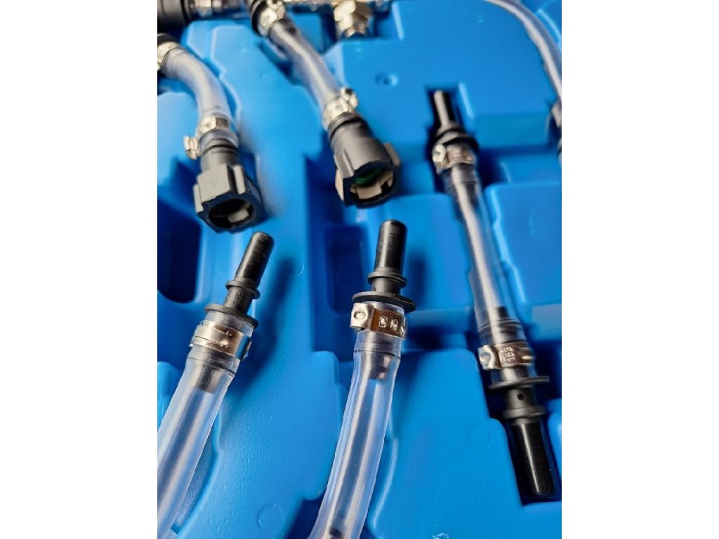 Praktická súprava pozostávajúca z gumového balónikového čerpadla a rôznych typov rýchlospojok pre rôzne vozidlá, ako sú Ford, Renault, Fiat, vozidlá PSA (Peugeot, Citroen, Opel atď.