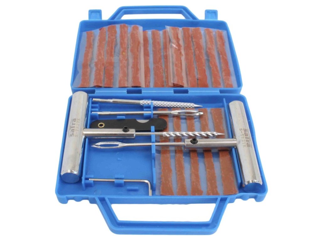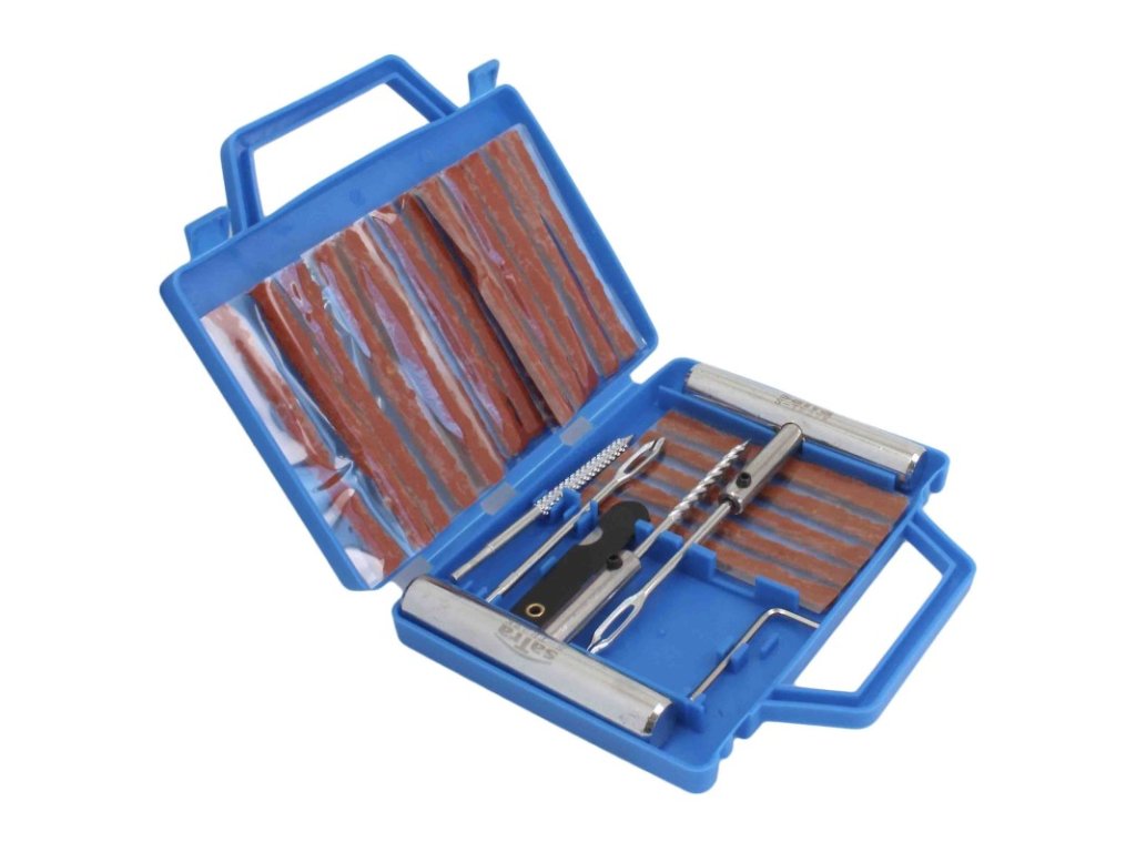 Komplexná opravárenská súprava pre pneuservisy, ale aj pre núdzové opravy na cestách. Obsahuje základné vybavenie na servis poškodených - bezdušových pneumatík. Dodáva sa v pevnom plastovom kufríku.
