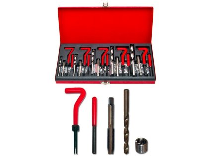 131 dielna sada na opravu poškodených, strhnutých závitov, pre závity s klasickým stúpaním M5, M6, M8, M10, M12.