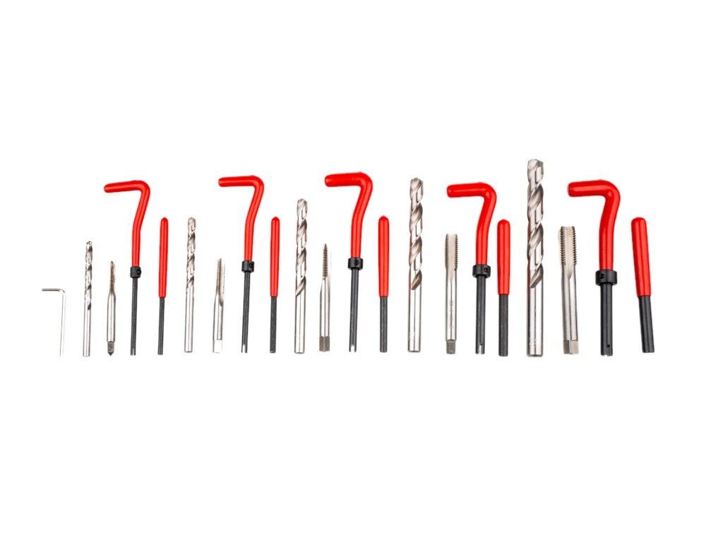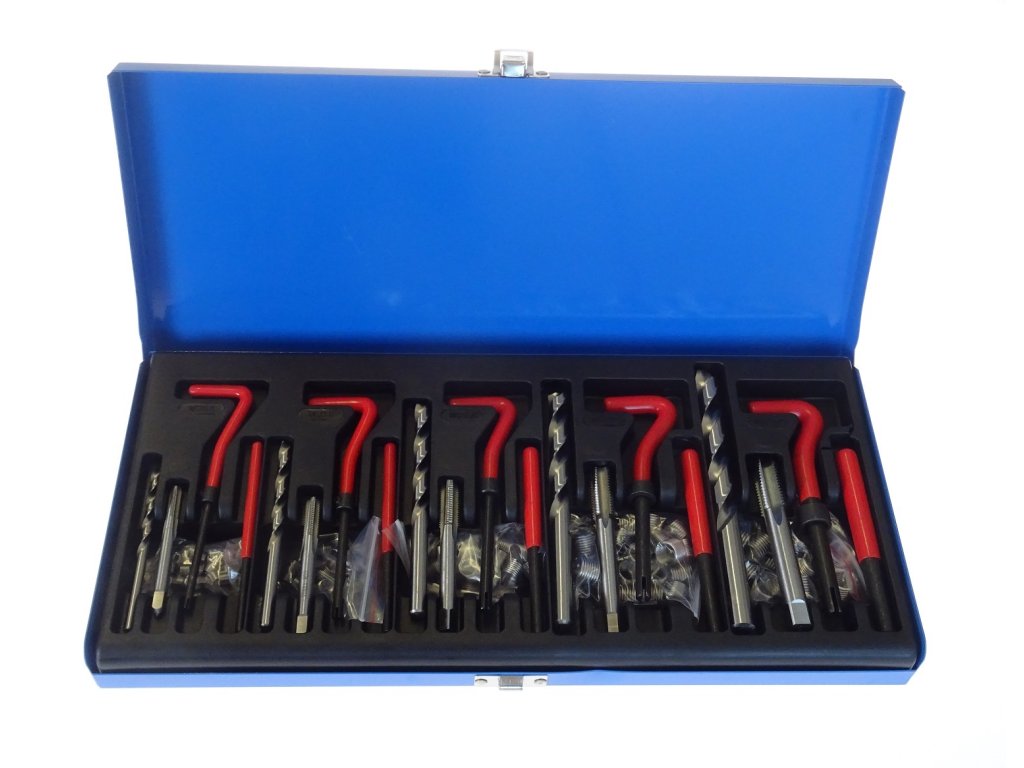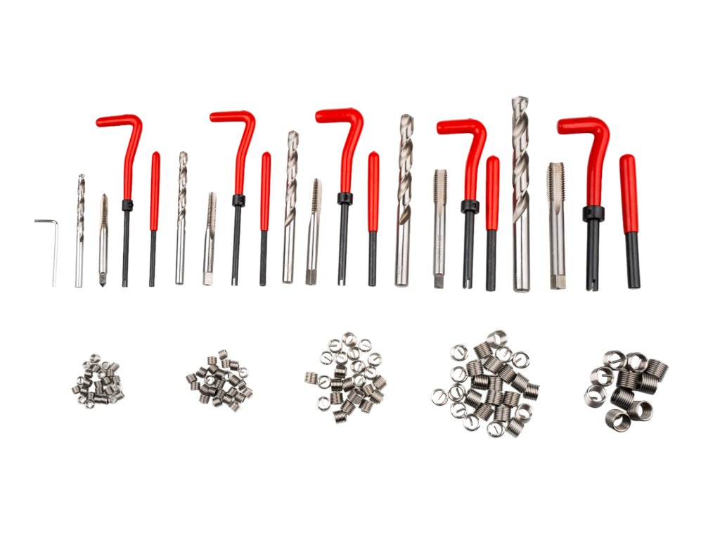 131 dielna sada na opravu poškodených, strhnutých závitov, pre závity s klasickým stúpaním M5, M6, M8, M10, M12.