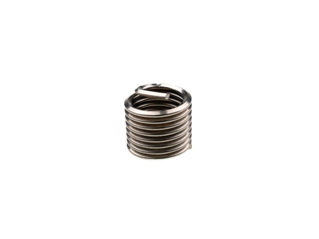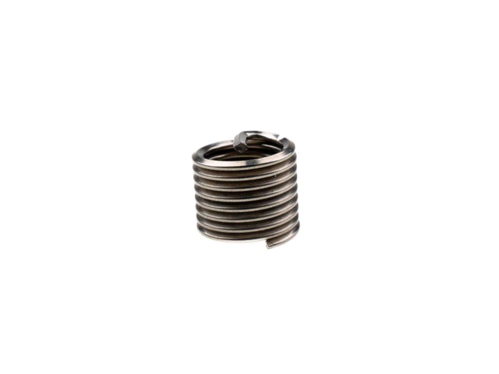 2. Do predvŕtaného otvoru vyrežte jednostupňovým závitníkom závit, do ktorého potom pomocou špeciálneho skrutkovača zaskrutkujte špirálovú závitovú vložku z nerez ocele.