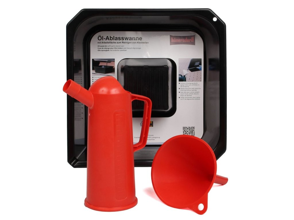 Sada na vypúšťanie a plnenie motorového oleja, vaňa, lievik a odmerka, plast